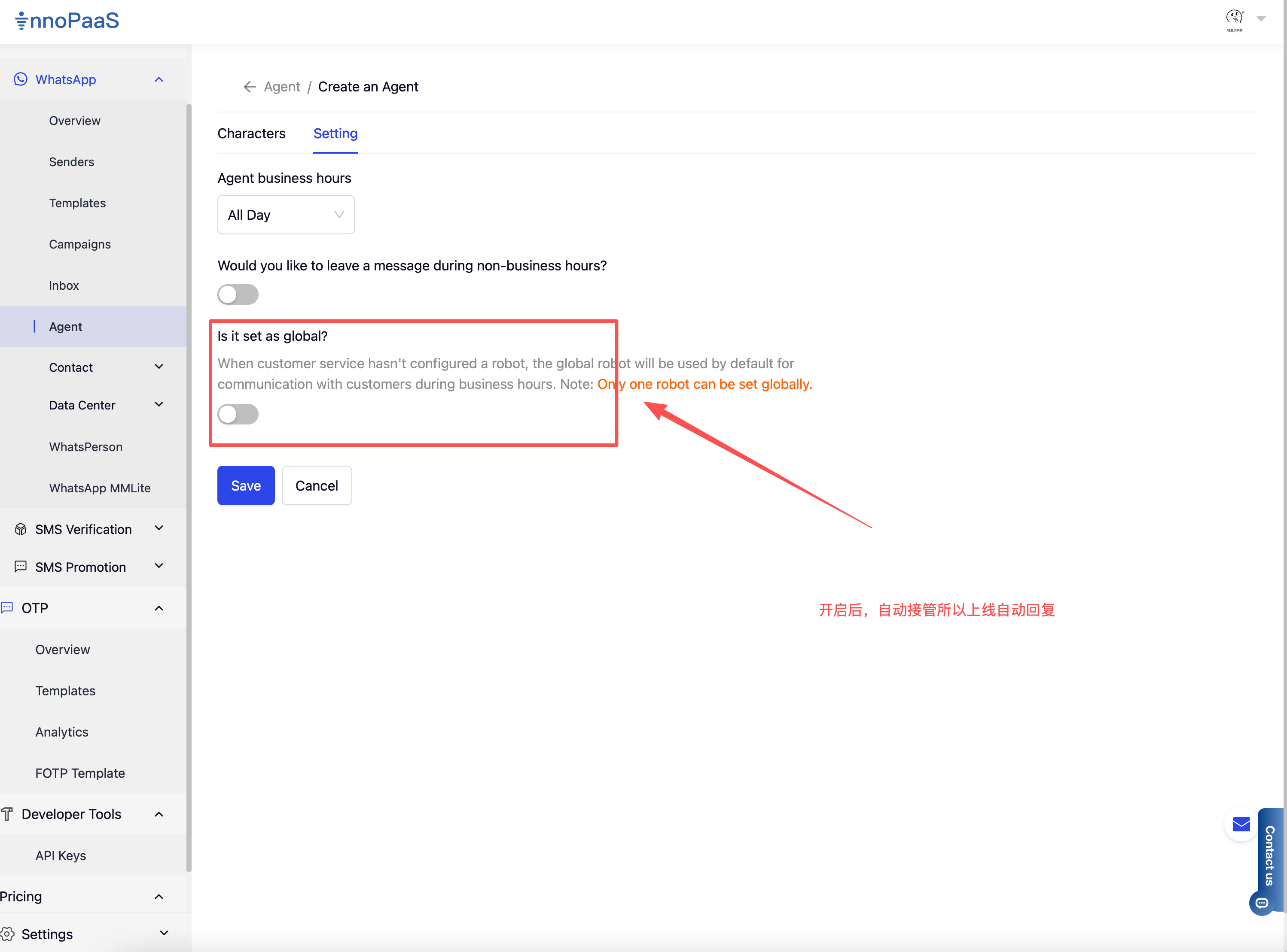 You can personalize the robot, such as business hours, non business hours reply language, etc.