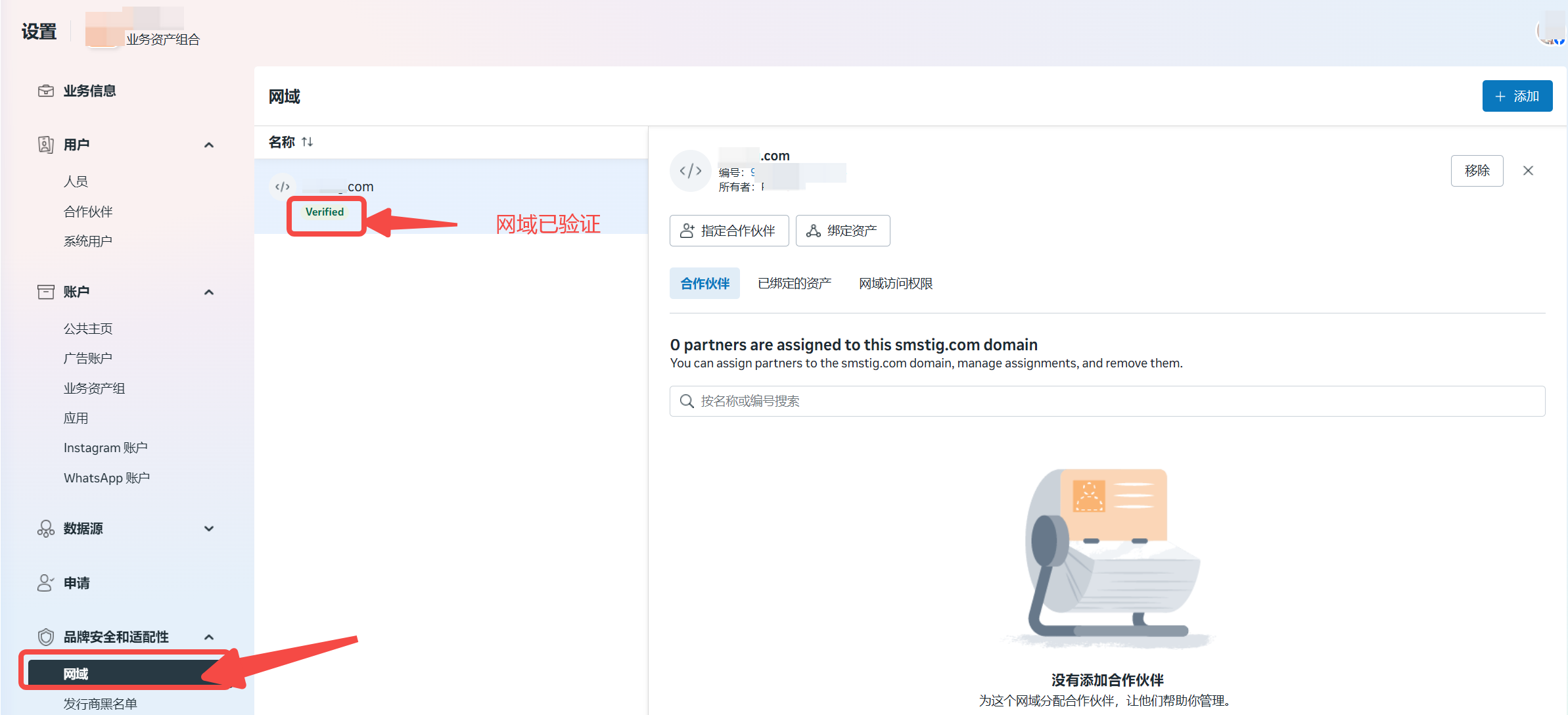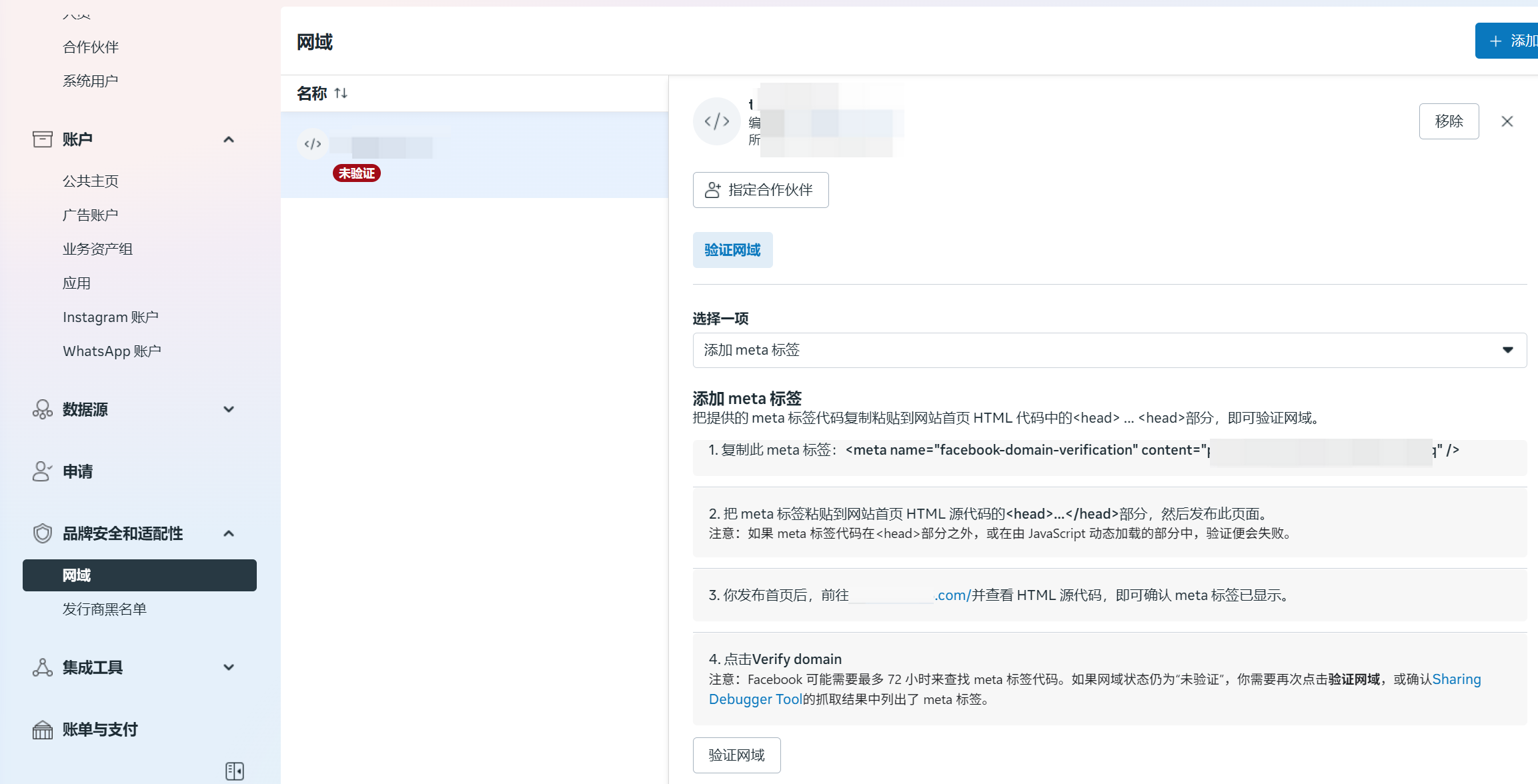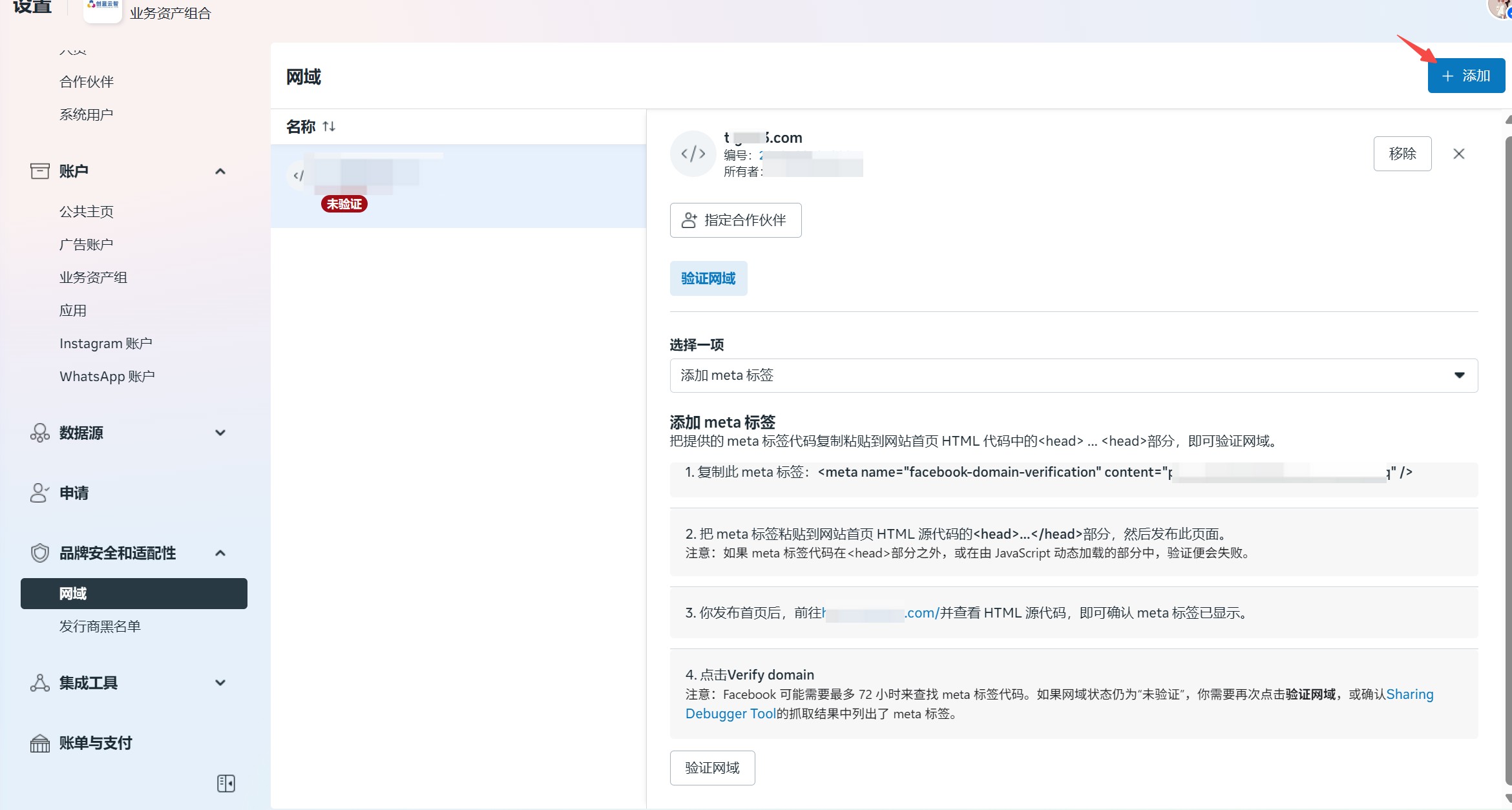 网域(Domains)地址:https://business.facebook.com/latest/settings/domains?business_id=
