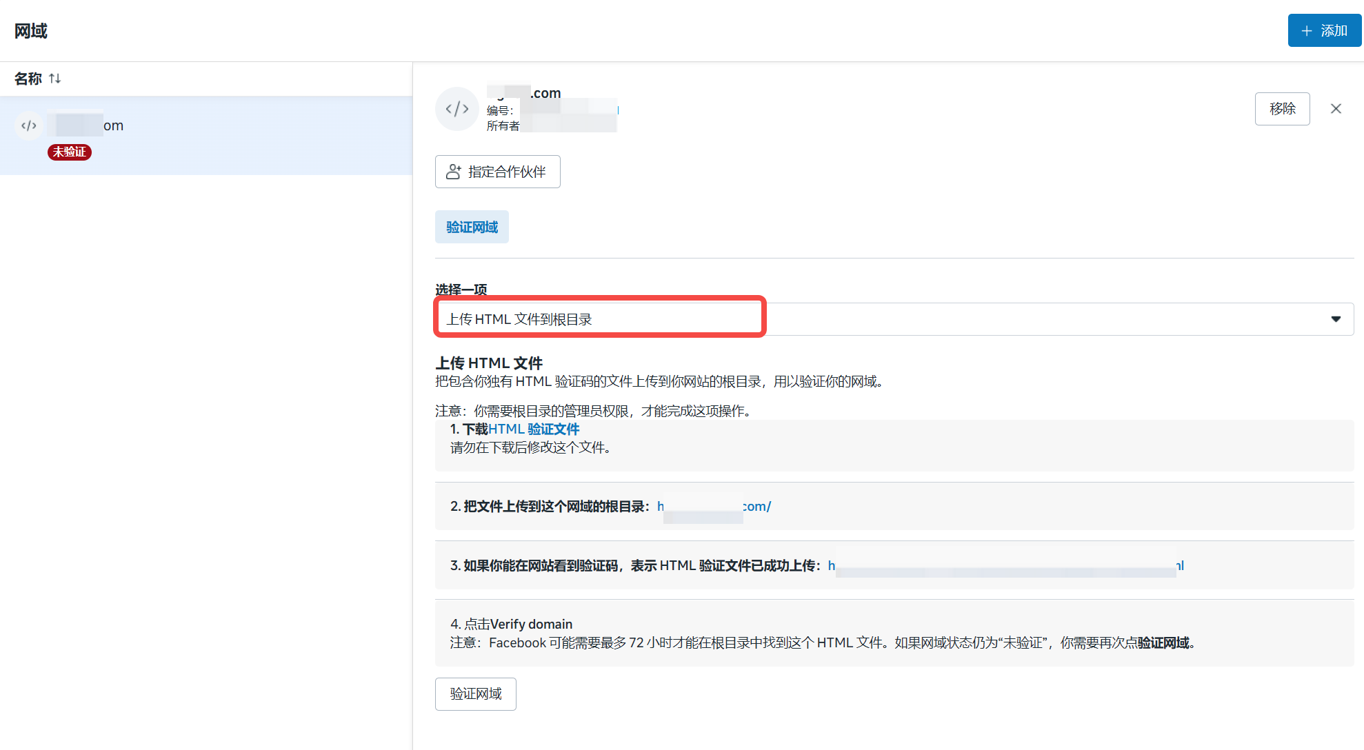 把包含你独有 HTML 验证码的文件上传到你网站的根目录,用以验证你的网域。